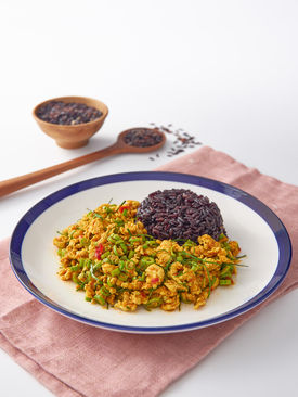 DON ข้าวไรซ์เบอร์รี่ กะเพรา + ไข่ข้น